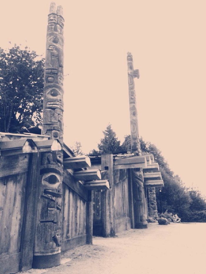 (图腾柱是氏族的标志,柱子上刻画的动物就是他们的祖先,鹰、渡鸦、蛙、狼、熊)