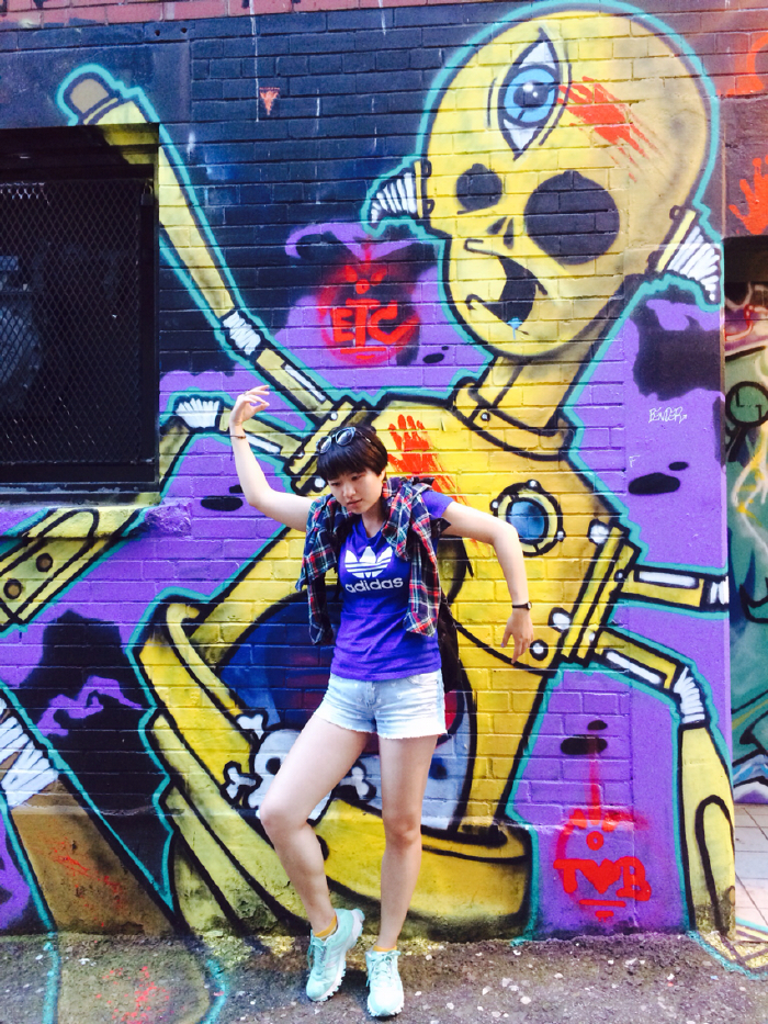 (附近的一片涂鸦墙,造型就随便摆吧,拍个MV也成啊~)