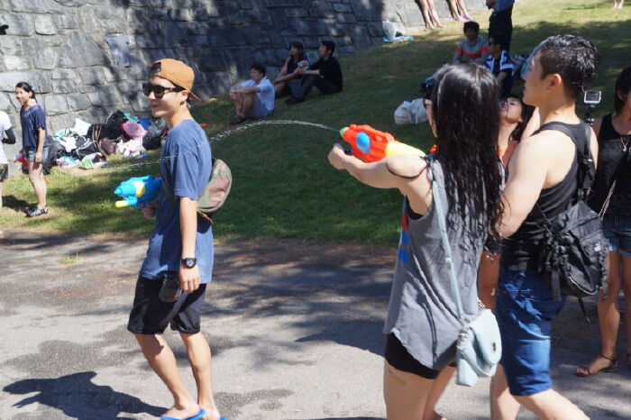 (水枪、大桶甚至塑料袋,一度我的隐形眼镜都差点被冲出来,我镇定了一下,转了转眼珠,又继续冲了回去报复刚才那个浇了我一头水的男生。所有人互不相识,但都玩的很欢乐,年轻人相互都不用说话就能玩在一块儿!)