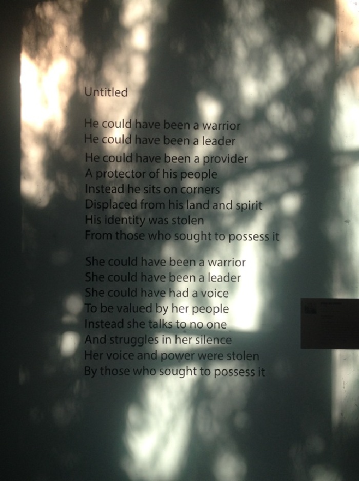 (她本可以成为一个战士,但是她的歌喉与神力被那些想要拥有它的人夺走了。MOA青少年展览的墙头诗)